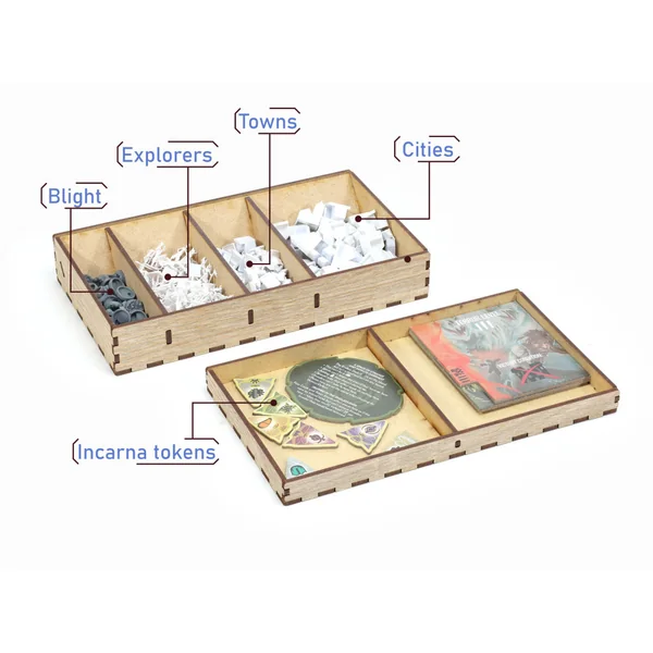 Permet de ranger tous les composants du jeu dans deux boîtes : la boîte du jeu de base et la boîte de Jagged Earth.