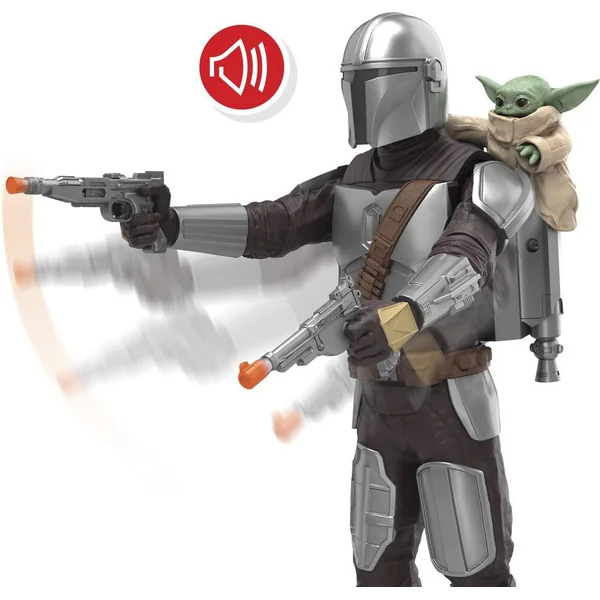 Cette figurine Le Mandalorien inclut une figurine Grogu et des blasters fixés sur la figurine, émet des effets sonores épiques et a de nombreux points d’articulation pour un maximum de poses. Il suffit d’appuyer sur les boutons sur le propulseur dorsal du Mandalorien pour activer des mouvements et des sons de combat.