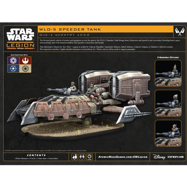 Cette boîte d’extension pour Star Wars™: Légion, le jeu de figurines, contient un Char Speeder WLO-5. Véhicule de combat préféré des pirates et des gangsters de toute la galaxie, il bénéficie d’une puissance de feu et d’une vitesse qui lui permettent de s’adapter à toutes les situations.