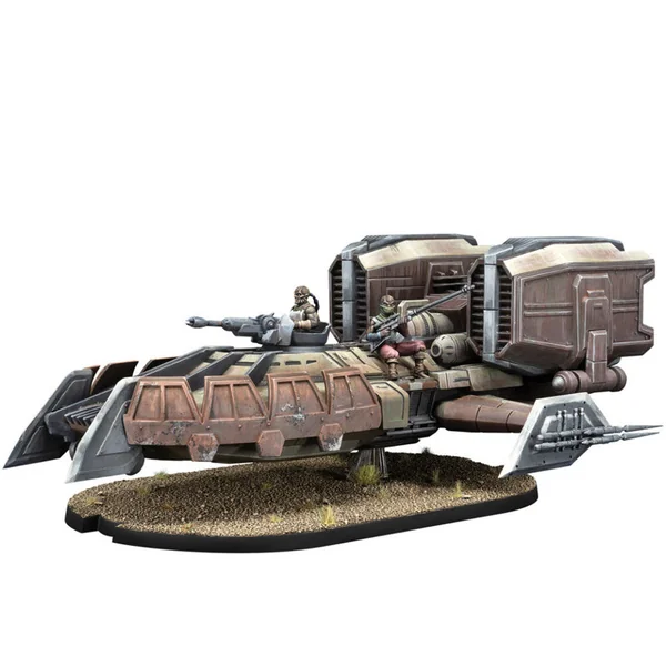 Doté d’armes lourdes, d’une coque blindée et d’une excellente maniabilité, ce redoutable char est à la hauteur de sa réputation. Ce véhicule de mercenaires peut être utilisé par la République Galactique, l’Alliance Séparatiste, l’Alliance Rebelle, l’Empire Galactique et le Collectif de l’Ombre. C’est le véhicule idéal pour être associé à Hondo Ohnaka et aux pirates Weequay (AMGSWQ59).