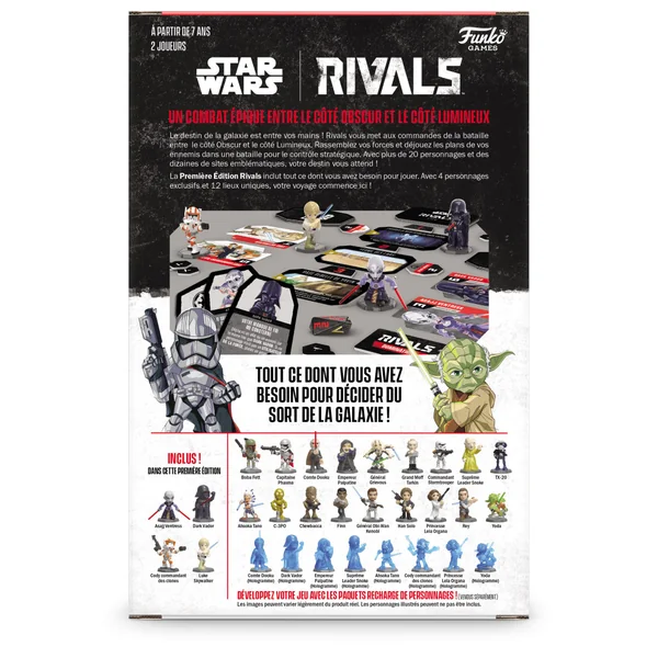 Le destin de la galaxie est entre vos mains ! Star Wars Rivals est un jeu de duel extensible qui vous place au milieu de la bataille entre le Côté Obscur et le Côté Lumineux. Rassemblez vos forces et déjouez vos ennemis en vous battant pour le contrôle stratégique de lieux emblématiques. Avec 30 personnages à collectionner et à combattre, votre destin vous attend !