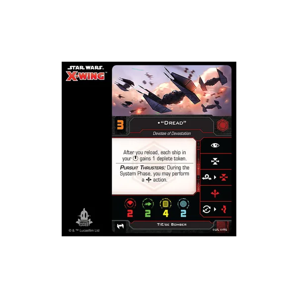 Ce pack d’escadron comprend du contenu pour Kylo Ren et ses irréductibles dévoués, avec de nouvelles capacités et améliorations basées sur leur apparition dans Star Wars™ : The Rise of Skywalker et Star Wars™ : Resistance. Ce pack comprend tout ce dont vous avez besoin pour ajouter 1 vaisseau intercepteur modifié TIE/wi Whisper et 2 vaisseaux bombardiers TIE/se à vos parties de Star Wars : X-Wing ! 14 cartes de pilotes créent un pool de pilotes polyvalents pour ces vaisseaux qui peuvent être personnalisés de multiples façons grâce aux 32 cartes d’amélioration incluses. Les joueurs désireux de jouer avec ces vaisseaux peuvent dès que possible utiliser les quatre cartes de construction rapide incluses qui permettront de mettre ces puissants vaisseaux sur la table en un temps record avec des suggestions efficaces sur les améliorations et les configurations.