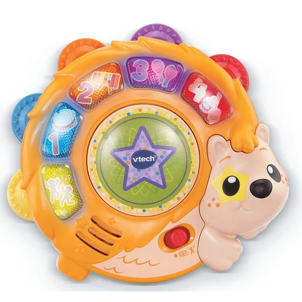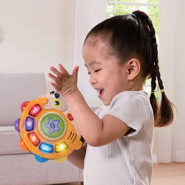 La poignée adaptée aux petites mains permet de tenir facilement le tambourin et un détecteur de mouvements déclenche des sons amusants lorsque l’enfant le secoue. En appuyant sur le bouton central l’enfant découvre des chansons et des mélodies entrainantes.