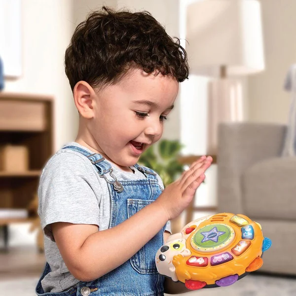 En mode Apprentissage, il découvre les chiffres, les couleurs et les instruments de musique grâce aux 5 boutons interactifs lumineux. En mode Jeu musical : place à la musique ! L’enfant danse tant que la mélodie joue… et doit s’arrêter quand la musique s’arrête. Un jeu de rythme et d’écoute pour bouger en s’amusant !