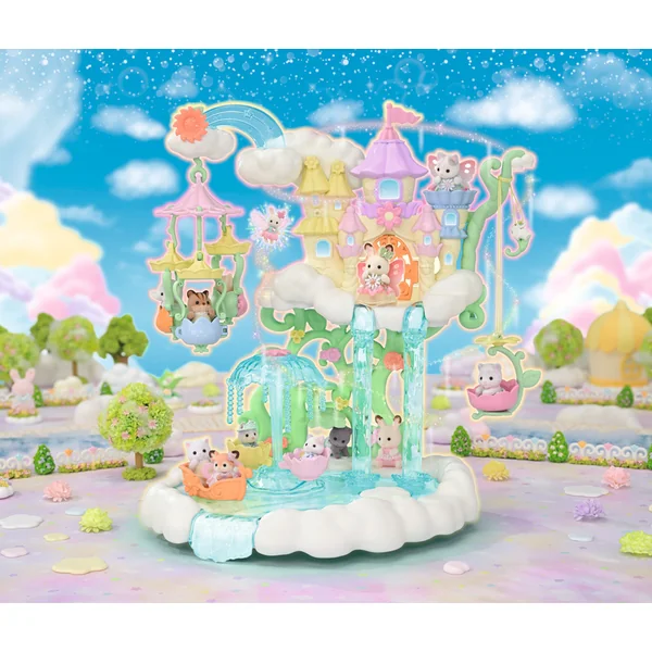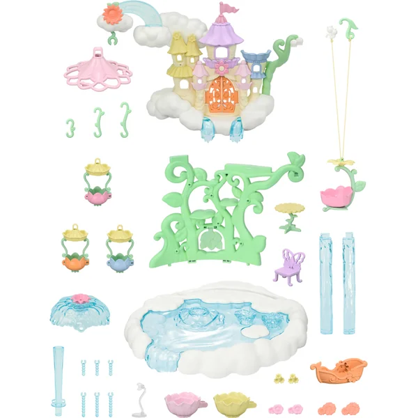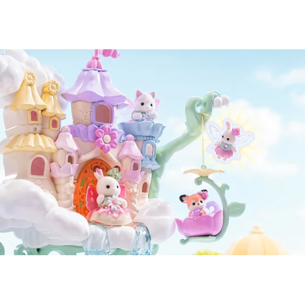 Bienvenue dans le palais céleste des fées des fleurs. Ce magnifique ensemble plein d’attractions transportera les amoureux du monde des Sylvanian Families dans un monde magique de divertissement incroyable.