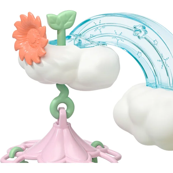 Le carrousel céleste avec trois sièges en forme de calices de fleurs est attaché aux nuages qui flottent au-dessus du palais. Dans le palais céleste des fées des fleurs, il y a de nombreuses attractions passionnantes que tous les petits animaux adoreront. Les enfants qui souhaitent se reposer peuvent s’asseoir à une petite table dans le café douillet. L’ensemble comprend deux adorables figurines, la petite Creme de la famille des lapins en chocolat et la figurine d’un petit lapin-fée des fleurs. L’ensemble peut être combiné avec d’autres ensembles de la collection Fées des fleurs.