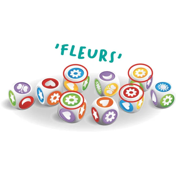 Lancez les dés au centre de la table. Soyez le premier à repérer le symbole ou la couleur la plus présente pour vous débarrasser d’un de vos dés.