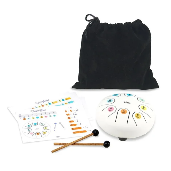 Accordé en Do majeur et doté d’une octave, notre tongue drum permettra aux enfants de s’initier à la musique tout en s’amusant. Notre équipe d’experts en musique a créé des partitions spécialement pour cet instrument afin de débuter avec quelques airs connus.