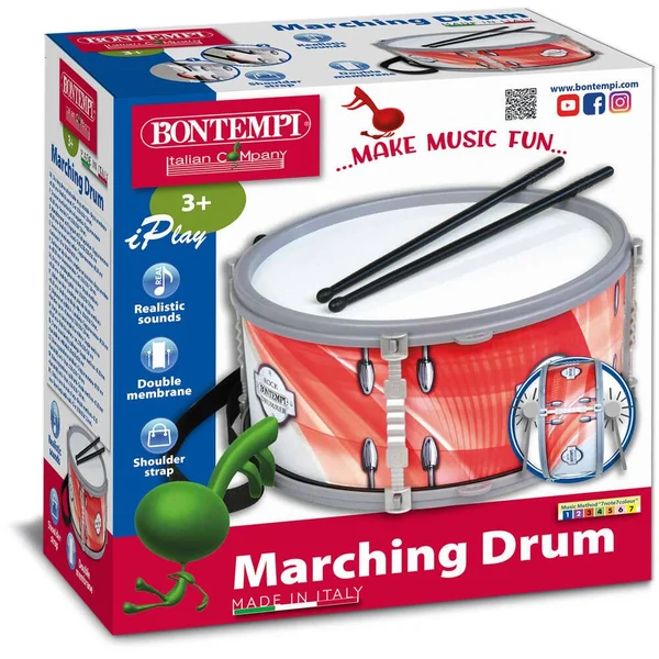 Tambour avec bandoulière et baguettes • Double membrane • Ø 250 mm • Son réel •Dim: 250x250x120 mm-