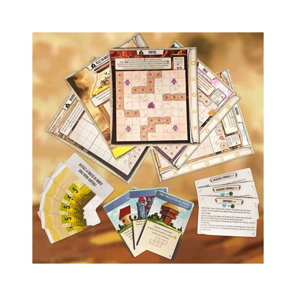 Dans cette troisième et dernière extension de Tapestry, 10 nouvelles civilisations, 6 tapis de capitales avancées, 38 nouvelles cartes Tapestry et 12 nouvelles cartes Technologie sont accompagnées d’un livret de règles complet qui regroupe toutes les règles de Tapestry et des 3 extensions en un seul endroit (ainsi que quelques cartes de remplacement des extensions précédentes : 3 cartes repères, Peinture à l’huile et Migration).