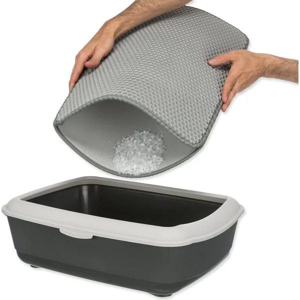 Tapis noir qui capture le sable excédentaire qui s’accroche aux pattes des chats lors de l’utilisation de la litière.