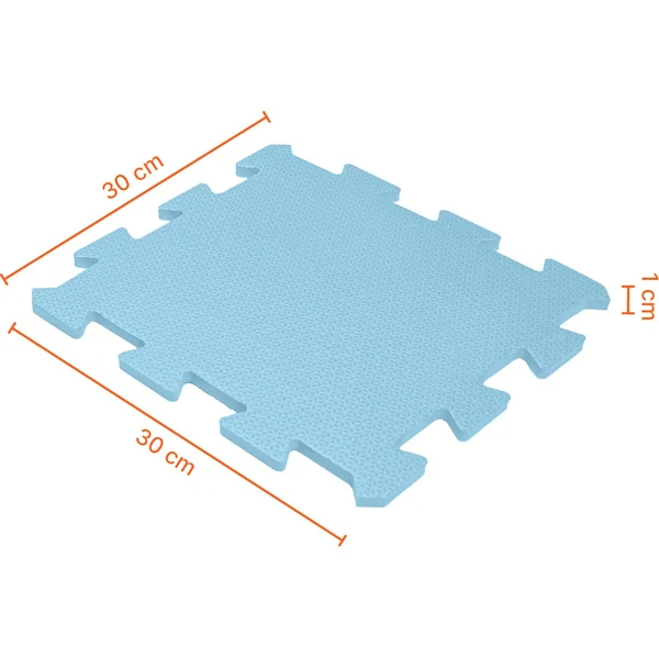 Les dalles individuelles de 30 × 30 cm (9 pièces) s’emboîtent parfaitement. Le tapis est adapté aux enfants dès la naissance, fabriqué à partir de matériaux non toxiques et agréables.