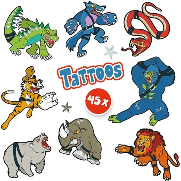 Tatouages pour enfants – guerriers animaux, 45 pcs