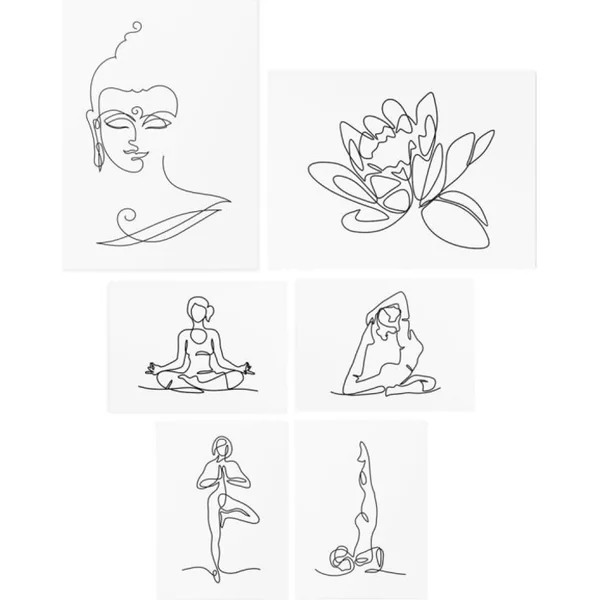 Trouvez votre paix intérieure et partagez-la avec le monde grâce à notre ensemble de tatouages temporaires sur le thème du yoga.