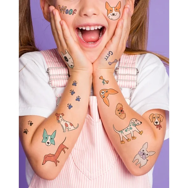 Ouaf ouaf ! Qui est là ? Une bande de bons gars est arrivée dans notre tatouage temporaire Dogs mix.