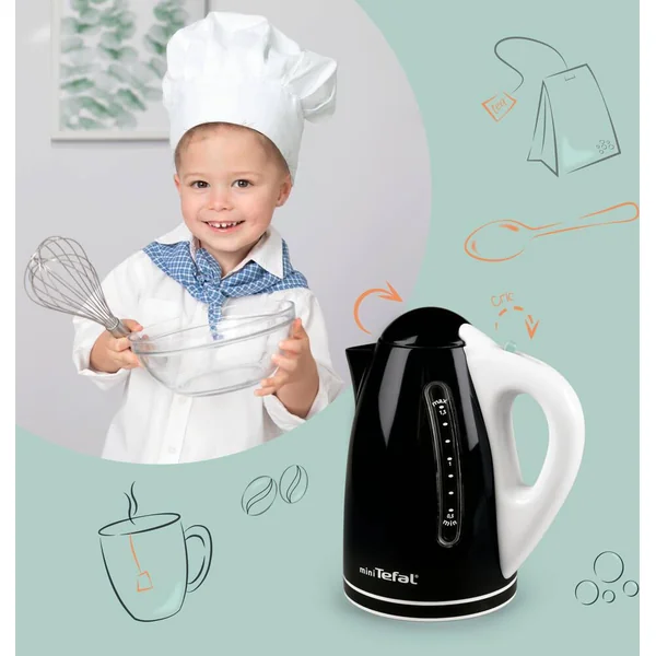 Parfaite réplique de la bouilloire « Express+ » Tefal. Fonction mécanique : il suffit de remplir le réservoir d’eau, de tirer sur le bouton pour entendre un bruit de chauffe. Réservoir étanche.