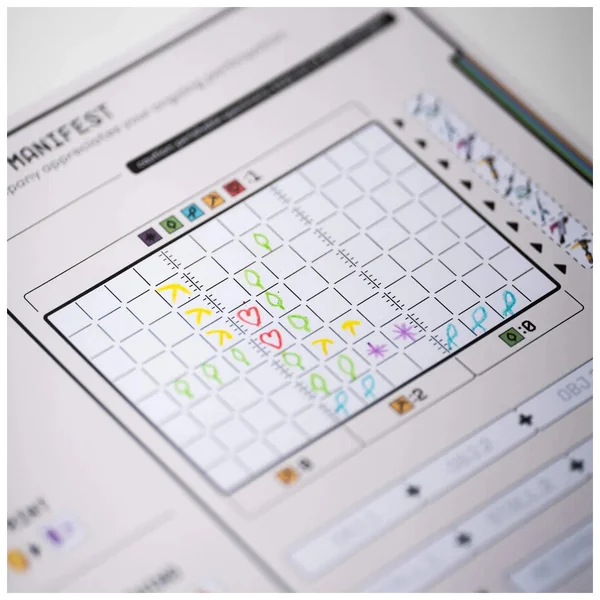À chaque tour, tous les joueurs utilisent le même paquet de cartes d’action pour effectuer simultanément des actions sur leurs propres feuilles de jeu.