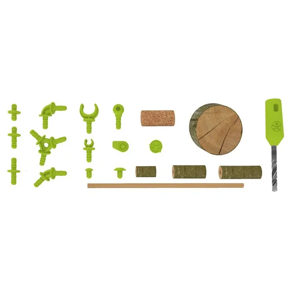Assembler, scier, percer, emboîter. Les Connectors Terra Kids vous permettront de créer de nombreux animaux, véhicules et figures passionnants. Le principe est simple et génial : percer de petits trous dans des pièces en bois, insérer des Connectors et relier ces pièces entre elles – et les constructions prennent vie. Le kit de base contient des branches préfabriquées avec de l’écorce pour faire un crabe. La notice contient de nombreuses suggestions pour d’autres constructions.