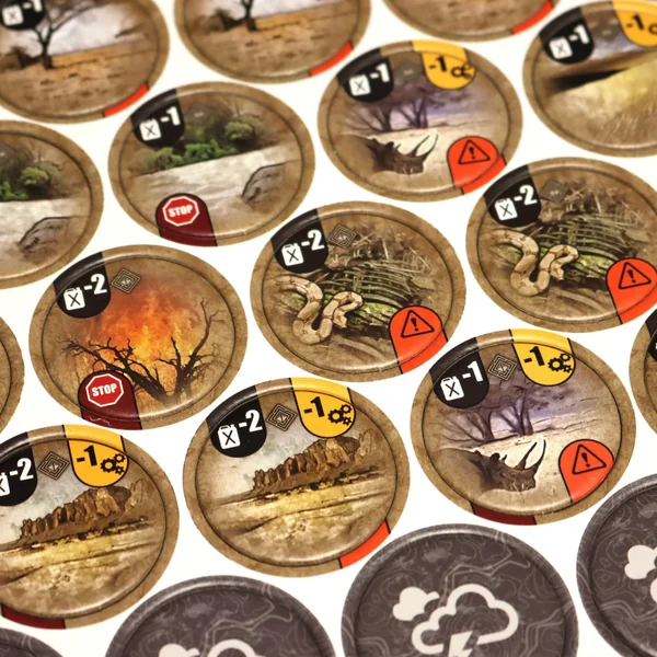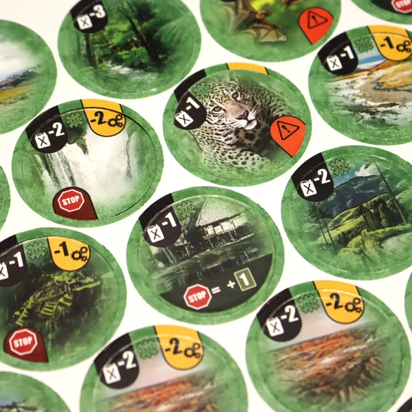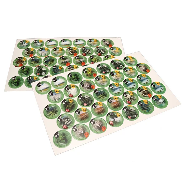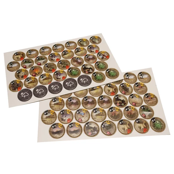 Ce kit contient 2 planches de jetons recto-verso (une face Afrique, une face Amérique du Sud) ainsi qu’un sac en coton recto-verso (une face Afrique, une face Amérique du Sud).
