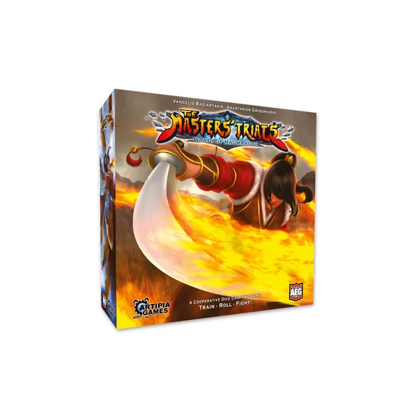 The Masters’ Trials: Wrath of Magmaroth est un jeu coopératif de création de dés dans lequel les joueurs incarnent les maîtres des ordres qui se sont unis pour affronter l’élémentaire maléfique. Chaque joueur dispose d’un plateau représentant son personnage et de 5 dés qu’il utilise pour appliquer les effets de ses capacités. À chaque tour, ils affrontent de nouveaux serviteurs, génèrent du mana et acquièrent de nouvelles capacités, qu’ils ajoutent à leurs personnages. Après 10 tours, ils se retrouvent face à face avec le puissant Magmaroth, qu’ils doivent vaincre avant que le volcan tout entier ne s’effondre autour d’eux.