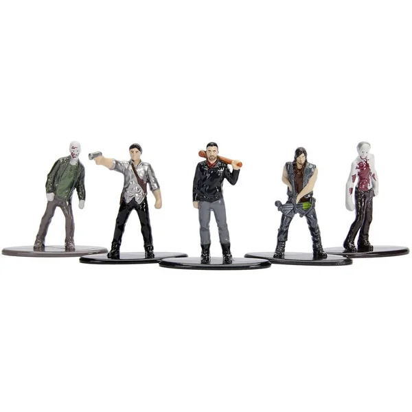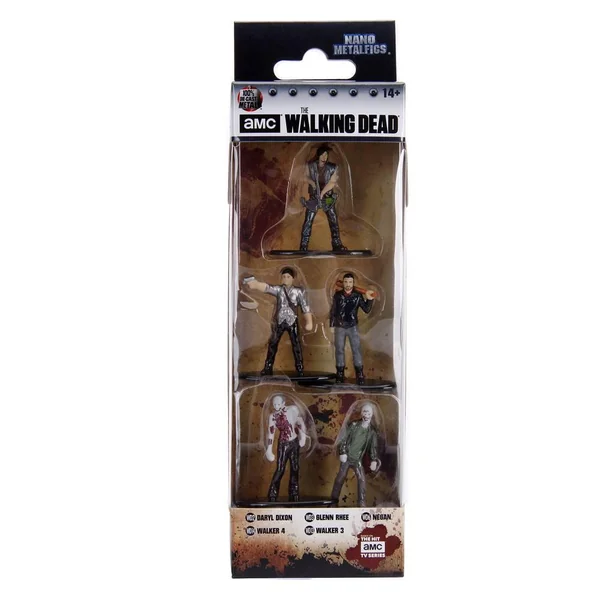 Pack de 5 figurines Nano Metalfigs The Walking Dead contenant 5 figurines Die-Cast : Daryl Dixon, Glenn Rhee, Negan, Walker 3 (un zombie) et Walker 4 (un zombie). En métal. Hauteur d’une figurine : 4,2 cm environ.