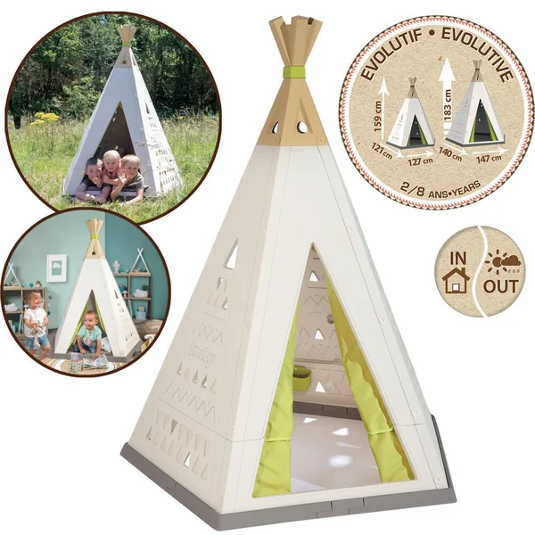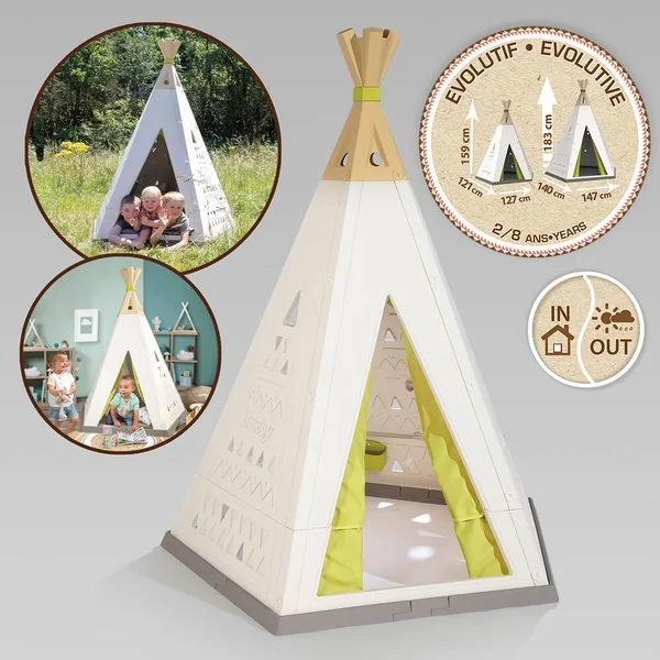 Ce tipi pour enfant est un produit de la marque Smoby, leader du jouet français. Prévu pour être utilisé à l’extérieur, il convient également pour une utilisation en intérieur. Que vous le placiez dans la chambre de votre enfant ou dans le jardin, son design contemporain s’adapte partout !