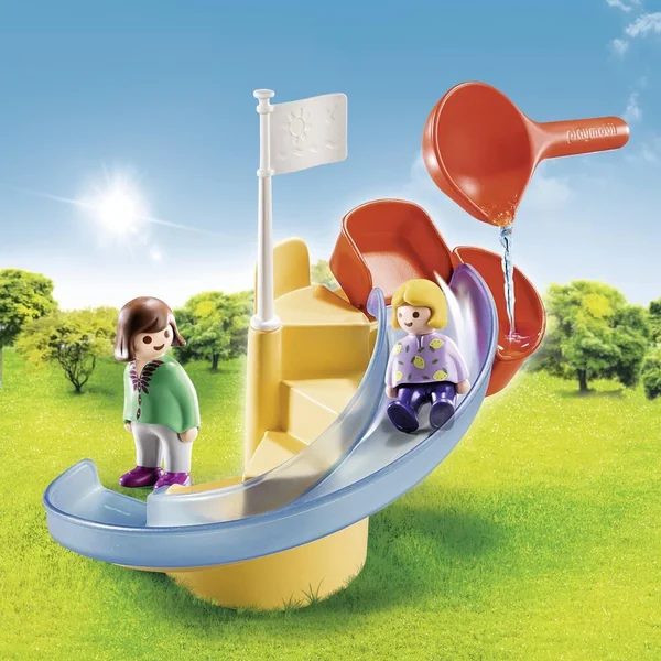 Drôle de toboggan ! PLAYMOBIL 1.2.3 accompagne les enfants de façon ludique pendant les premières années de leur vie. Le monde est si grand, coloré et impressionnant aux yeux des enfants. Tout ce qui est expérimenté et appris aujourd’hui constitue un socle pour la vie future. PLAYMOBIL 1.2.3 encourage ce développement de manière progressive et ludique parce que chaque enfant grandit à sa façon et à son propre rythme. First Challenge : Grâce à ce jouet, le jeune enfant découvre les apprentissages fondamentaux et progressivement maîtrise les premiers challengesLes premières expériences aquatiques favorisent de manière ludique la motricité et la compréhension du monde qui entoure l’enfant. Les petits amateurs de jeux d’eau vont découvrir les différentes fonctions du jouet grâce aux éléments rouges. Il suffit de verser de l’eau, grâce à la louche, dans le récipient à côté du siège pour lancer le personnage assis et le faire glisser. Peut être combiné avec la Réf. 70267 le Parc aquatique et la Réf. 70268 le Carrousel Aquatique. Dimensions : 20 x 16 x 20 cm (LxPxH).