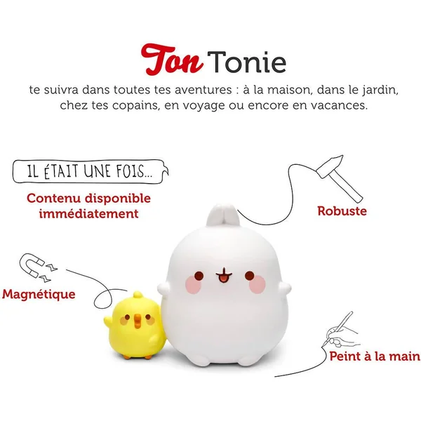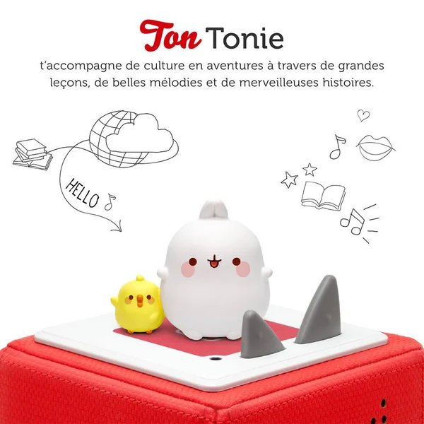 Avec votre figurine TONIES® Molang et votre TONIES®box (vendue séparément). Découvrez Molang, le personnage incontournable de l’univers audiovisuel jeunesse, très apprécié des enfants.