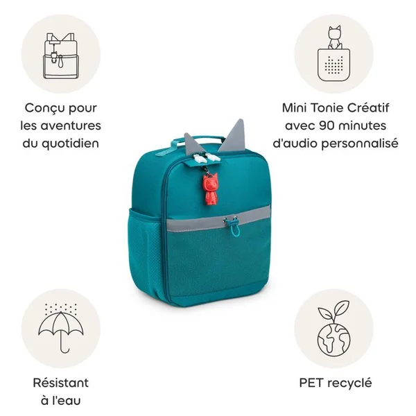 Pratique, confortable et sûr, le Sac À Dos – Vert Océan (+ Mini Tonie Créatif) est le compagnon idéal pour toutes les aventures des petits auditeurs.