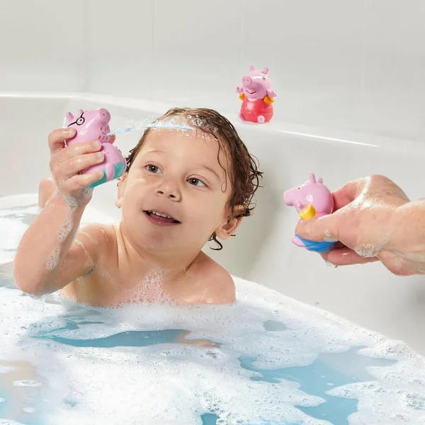 3 Gicleurs Peppa Pig pour s’amuser à s’arroser dans le bain :Papa Pig, Peppa et George.