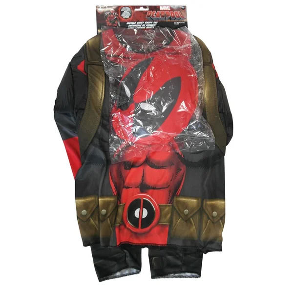 - Un top rouge et noir imprimé représentant la combinaison du célèbre Deadpool. Le top est également rembourré pour un véritable « effet muscles »