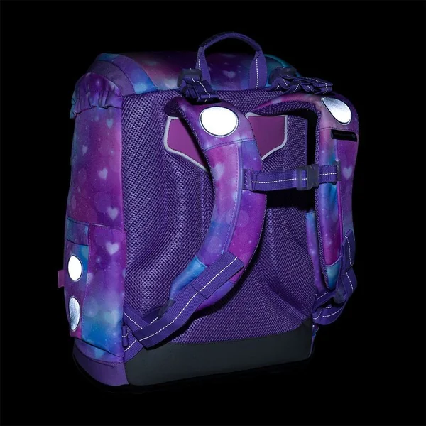- éléments réfléchissants : à l’avant et sur les côtés du sac à dos, sur les bretelles