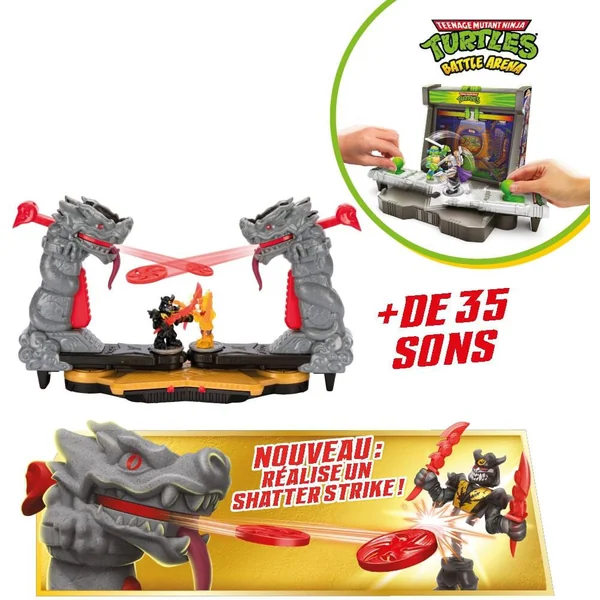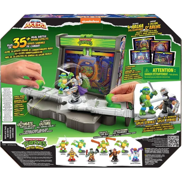 Avec plus de 35 effets sonores de combats et 4 décors d’arène Tortues Ninja UNIQUES, plonge au cœur de la bataille ! Tous les guerriers Akedo Tortues Ninja sont compatibles avec l’arène de combat : tu pourras créer tes propres tournois et batailles entre le bien et le mal ! Qui des Tortues ou des méchants remporteront la victoire ? Il y a 8 autres figurines Tortues Ninja à collectionner dans les 4 coffrets duel (vendus séparément).
