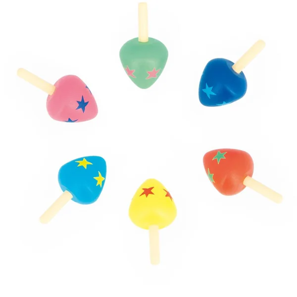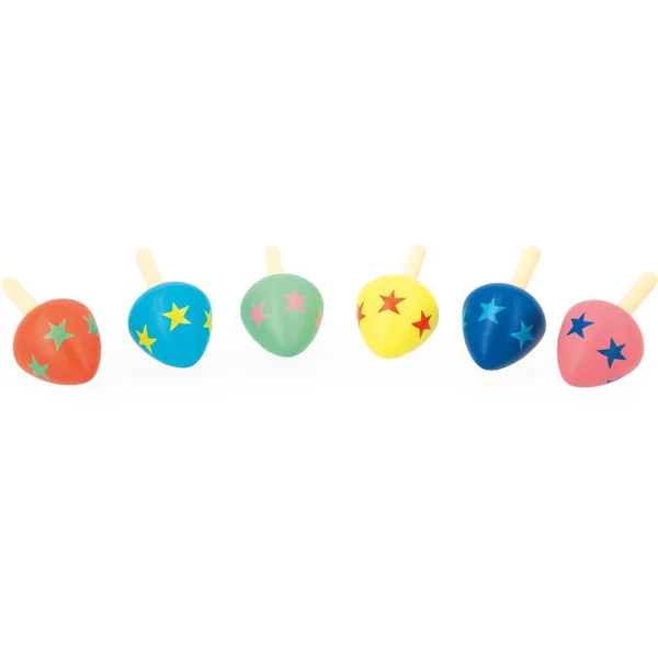 Approchez ! Approchez ! 6 couleurs assorties : bleu, rouge, jaune, vert, rose et bleu clair. Les toupies sont vendues à l’unité. Développe la dextérité fine des enfants. Jouet d’adresse en bois FSCTM. Pour les enfants à partir de 3 ans.