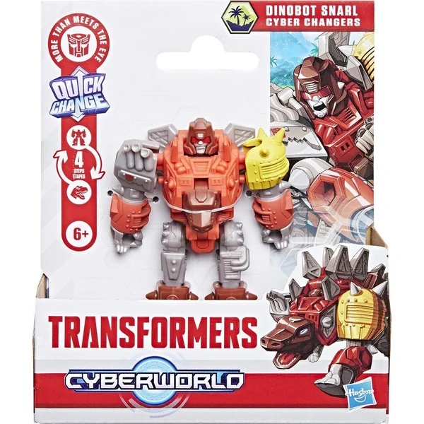 Dans le CYBERWORLD de Transformers, ce sont les enfants qui décident et tout commence avec des jouets incroyables comme cette figurine Cyber Changers Dinobot Snarl. Cette figurine Dinobot Snarl de 10 cm se convertit du mode robot au mode dinosaure en seulement 4 étapes qui sont suffisamment simples pour les enfants, à partir de 6 ans. On peut stimuler encore plus l’imagination des enfants avec les autres jouets CYBERWORLD (vendus séparément, dans la limite des stocks) et leur faire découvrir des personnages, des modes alternatifs, des environnements et bien d’autres éléments uniques. Les fans et les collectionneurs de Transformers, ainsi que les fans en devenir, adoreront découvrir cette version de l’univers des Transformers où le changement est la seule constante. TRANSFORMERS et HASBRO et toutes les marques et logos associés sont des marques de commerce de Hasbro, Inc.