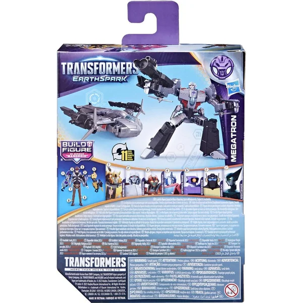 Transformers: EarthSpark présente une nouvelle génération de robots Transformers : les premiers robots Transformers à être nés sur Terre. Avec la famille humaine qui les a recueillis, ils redéfiniront ce que c’est d’être une famille. Les figurines de classe Deluxe donnent vie aux robots Transformers, de l’écran à la maison ! Ce jouet Megatron de 12,5 cm a une déco noir et argent classique, comme dans le dessin animé Transformers: EarthSpark. La figurine Transformers Megatron se convertit du mode robot au mode aéronef blindé en 11 étapes. Chaque figurine de classe Deluxe inclut une pièce Build-a-figure. En combinant toutes les pièces (incluses avec toutes les figurines de classe Deluxe), on peut assembler la figurine du Dr. Meridian « Mandroid », le méchant mi-homme mi-robot du dessin animé ! La figurine Build-a-figure mesure 11 cm et n’est pas convertible.