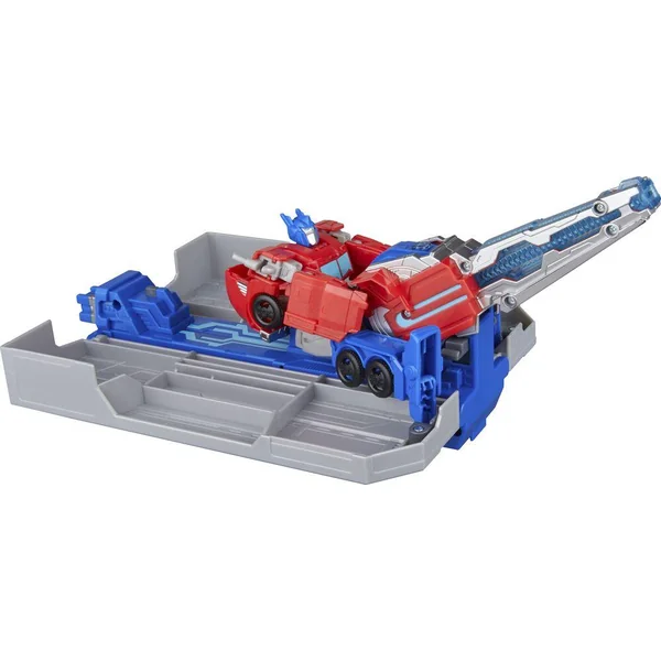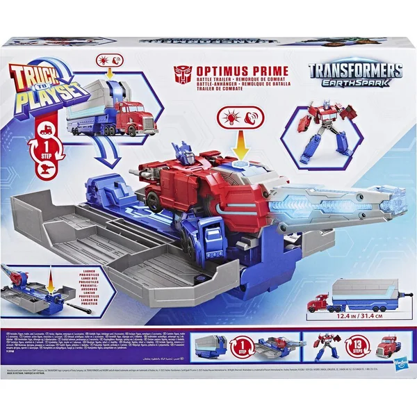 En route et au combat avec le coffret Transformers Optimus Prime Remorque de combat ! Il y a plusieurs façons de jouer avec ce coffret Transformers extraordinaire. On peut convertir la figurine Optimus Prime de 12,5 cm en mode camion puis y attacher le coffret en mode remorque et prendre la route ! Puis, on peut convertir la figurine Optimus Prime en mode robot et déployer le blaster du coffret pour l’ouvrir en mode station de combat. La figurine peut prendre place dans la station de combat et manœuvrer le blaster lumineux ou le lance-projectile. Les enfants peuvent charger un projectile dans le lance-projectile et tirer en appuyant sur un bouton. Le coffret émet des effets lumineux et sonores uniques dans chaque mode pour que les enfants s’imaginent au cœur de l’action du dessin animé Transformers: EarthSpark. Les jouets électroniques comme ce coffret Remorque de combat Optimus Prime sont d’excellents cadeaux pour les filles et les garçons, à partir de 6 ans, qui aiment les figurines Transformers et les petites voitures. TRANSFORMERS et HASBRO et toutes les marques et logos associés sont des marques de commerce de Hasbro, Inc.