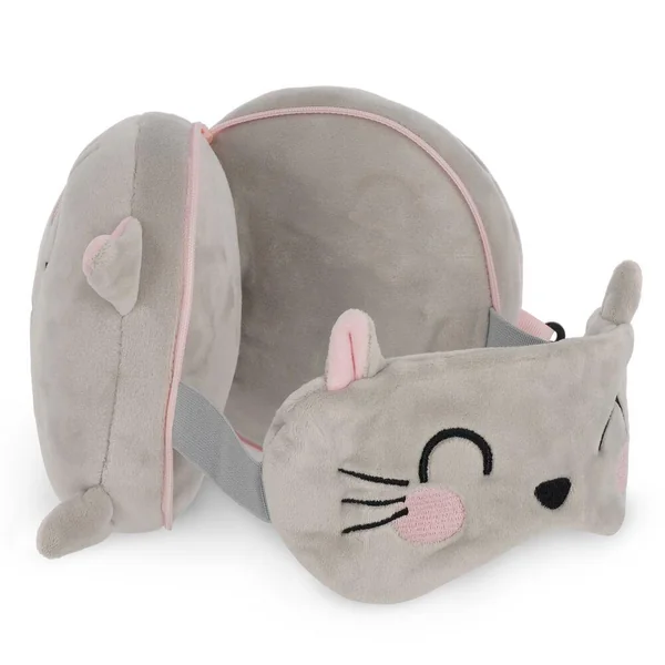 TRAVEL PILLOW WITH SLEEP MASK – MY TRAVEL BUDDY – KITTY