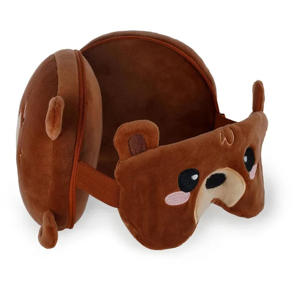 TRAVEL PILLOW WITH SLEEP MASK – MY TRAVEL BUDDY – TEDDY BEAR