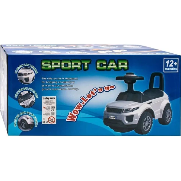 Trottinette pour enfants Baby Mix SUV. La trottinette a un design moderne d’une belle voiture et est fabriquée en plastique de haute qualité. Un excellent et sûr jouet. La forme du jouet aide à développer les capacités motrices de l’enfant. Il y a un espace de rangement pour les jouets et autres petites choses sous le siège.