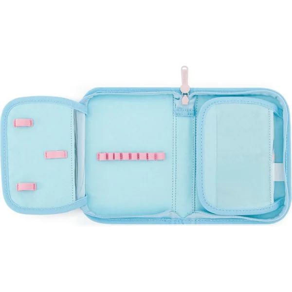 Trousse d’école à un étage avec 2 rabats, vide, contient 25 élastiques pour maintenir les fournitures d’écriture.
