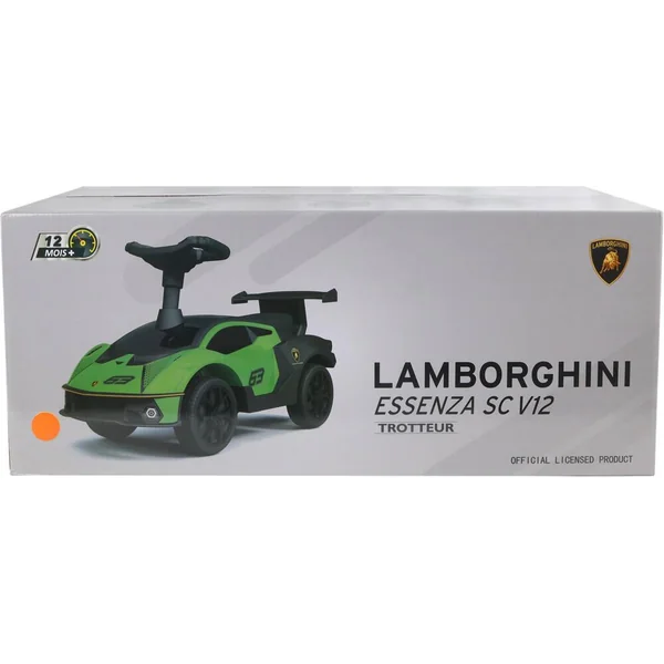 Découvrez le trotteur Lamborghini Essenza SC V12 vert, parfait pour les enfants dès 12 mois qui veulent explorer tout en travaillant leur motricité. Avec son design fidèle à la légendaire Lamborghini, ce trotteur permet à votre enfant d’avancer en poussant avec ses jambes, tout en développant sa coordination. Il est équipé d’un coffre pratique pour ranger son doudou préféré et propose des effets sonores amusants (fonctionne avec 2 piles AA non incluses). Avec une longueur de 67 cm, ce trotteur supporte un poids maximum de 25 kg pour des moments de jeu en toute sécurité.