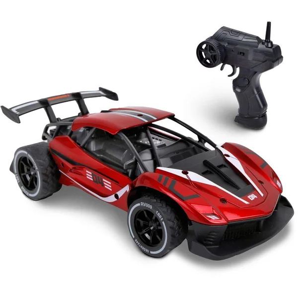 1 voiture racer à l’échelle 1/16 de 2.4 GHz et une télécommande d’une portée de 20 mètres. Elle roule à une vitesse de 12 km/h. Elle est equipée d’1 batterie 3,7V et chargeur USB inclus + 2 piles AA pour la télécommande.
