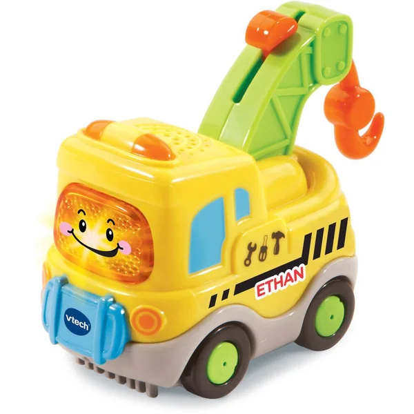 Le circuit Tut Tut Bolides est accompagné d’un véhicule électronique et lumineux appelé « Éthan le pro de la dépanne« . Il est doté d’effets sonores qui fonctionnent grâce à 2 piles LR03 (fournies). Pour les déclencher, appuyez sur son visage ou déplacez-le sur l’une des neuf zones magiques