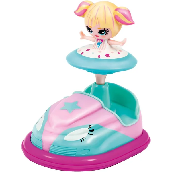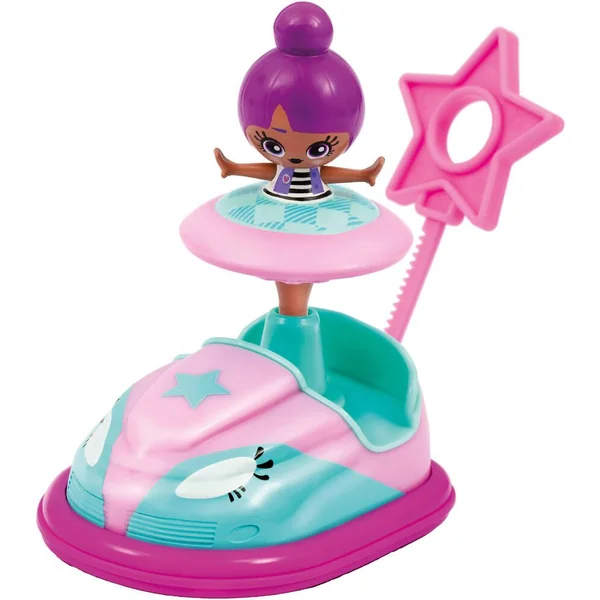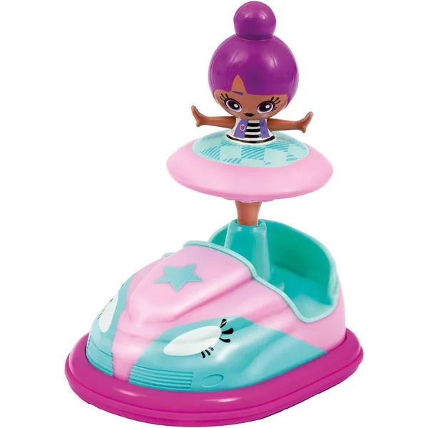 Poupée de 6 cm avec son véhicule. Place ta poupée sur le véhicule et utilise le lanceur pour faire bouger le véhicule.