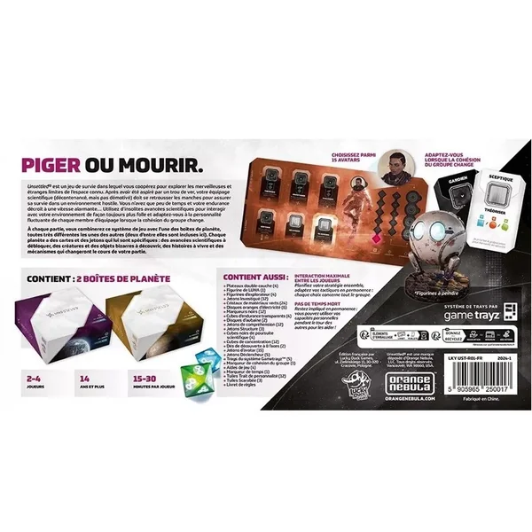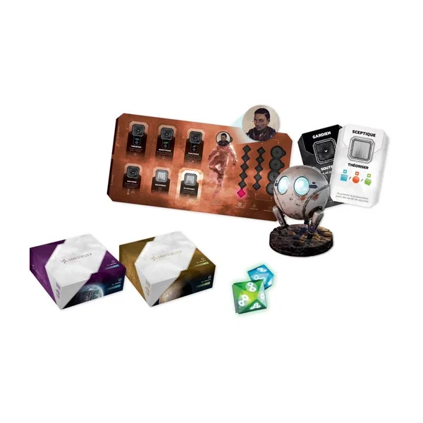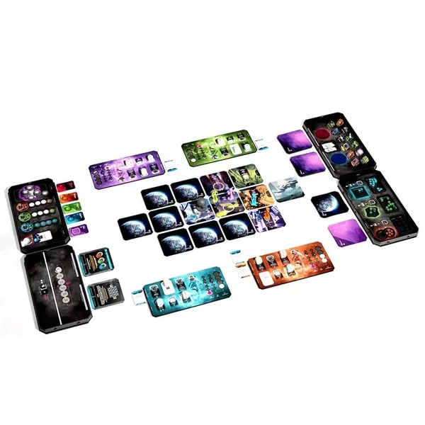 • 48 grandes cartes : environnements, tâches de survie, opportunités, cartes spécifiques à la planète (le nombre de ces cartes varie en fonction de la boîte)