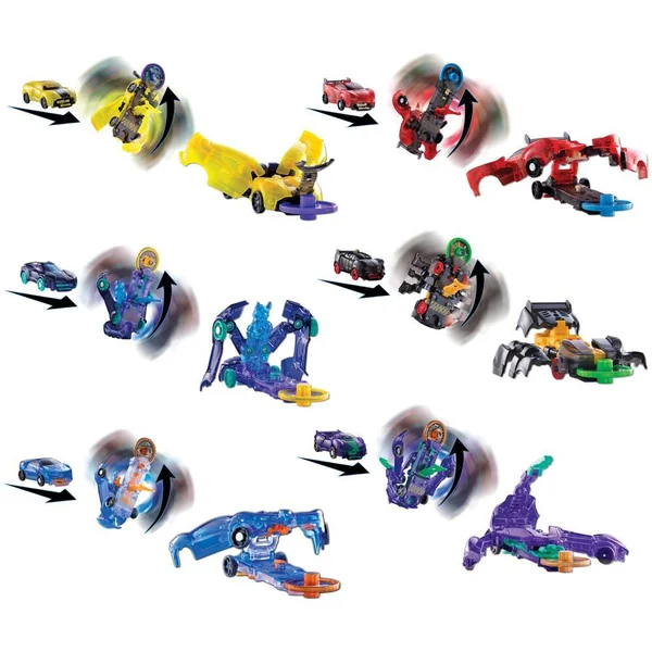 Un concept unique de véhicules qui se transforment magiquement en créature, dans un looping à 360°, lorsque le véhicule attrape le disque contre lequel il est lancé. AUTO TRANSFORMATION MECANIQUE SPECTACULAIRE de VOITURE en CREATURE. Dès que le disque est capturé. Transformation entièrement mécanique, pas de piles. Chaque véhicule attrape 1 disque. 2 disques à collectionner inclus avec le véhicule. 6 modèles de voitures de course à collectionner. Modèle selon disponibilité. Vendu à l’unité.