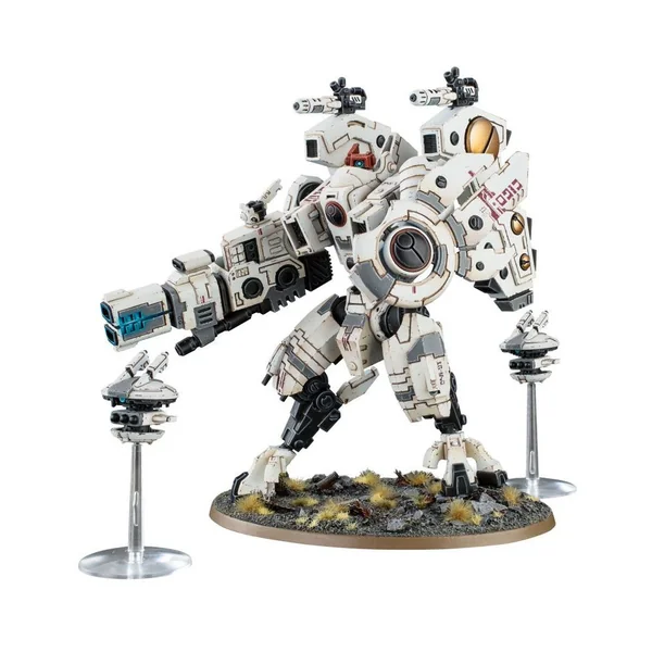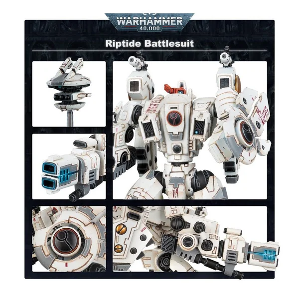 Le modèle XV104 Riptide est le dernier cri du développement des exo-armures par la caste de la Terre. Deux fois plus haute qu’une XV8 Crisis, ses mouvements restent plus proches de ceux de ses cousins plus petits que de la maladresse mécanique des marcheurs impériaux mûs par des servo-moteurs rudimentaires.