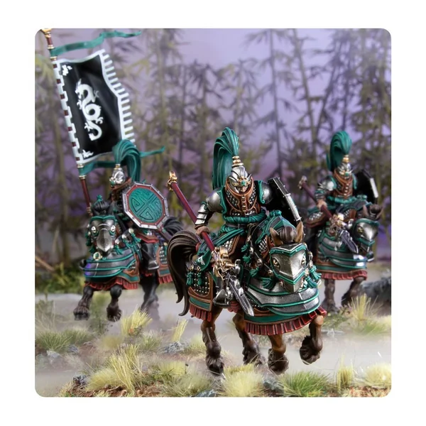 Les Lanciers de Jade forment des régiments montés adroits et disciplinés recrutés parmi les soldats des plus grandes cités. En plus d’être une arme efficace sur le champ de bataille, les Lanciers de Jade s’entraînent à combattre dans les rues encombrées de leur ville ainsi qu’en terrain dense, ce qui leur permet de lancer des charges dévastatrices dans des rues étroites, à travers des ponts et dans les tunnels qui courent sous les murailles, ainsi qu’à travers une végétation dense ou en terrain boueux.