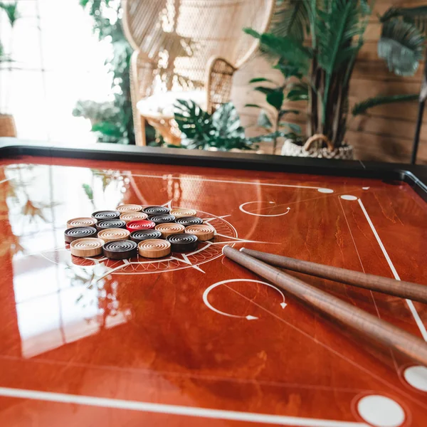 - 2 jeux de disques de carrom + 1 disque de rechange pour chaque jeu